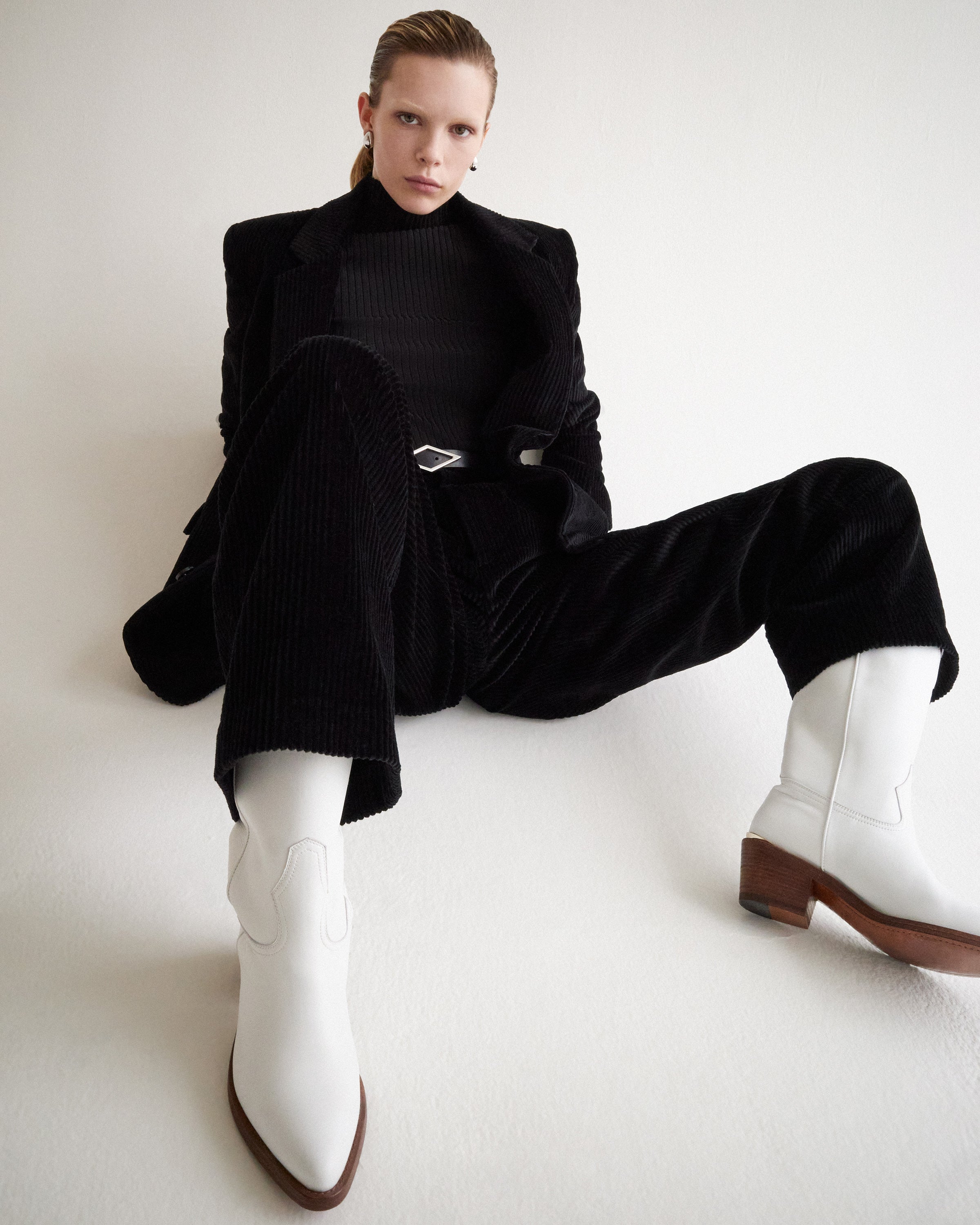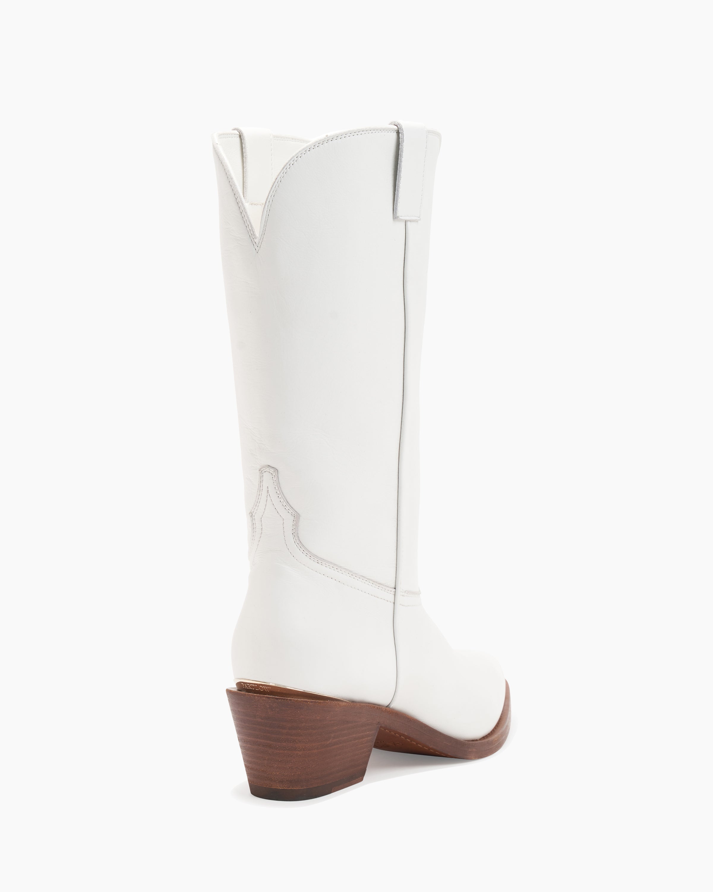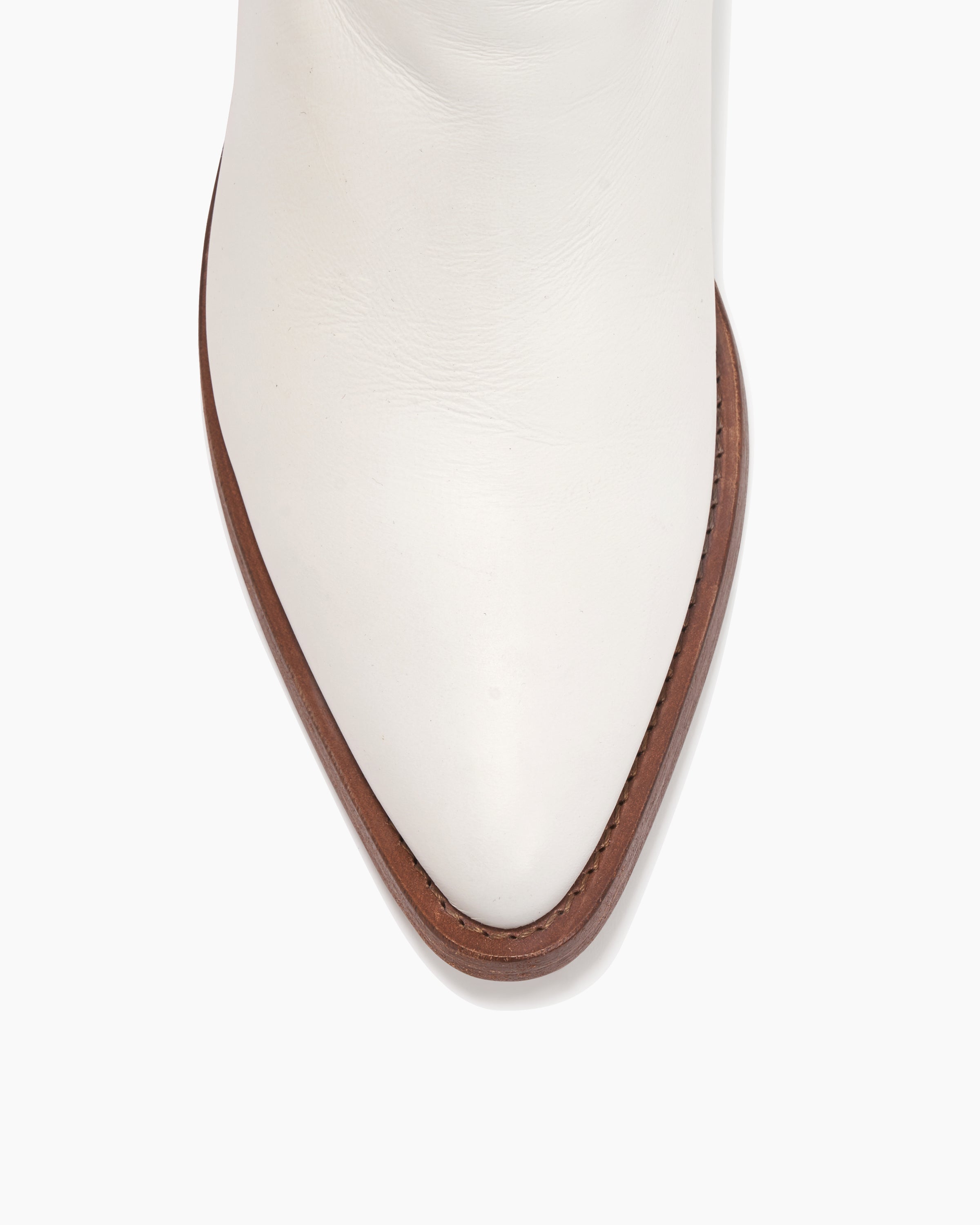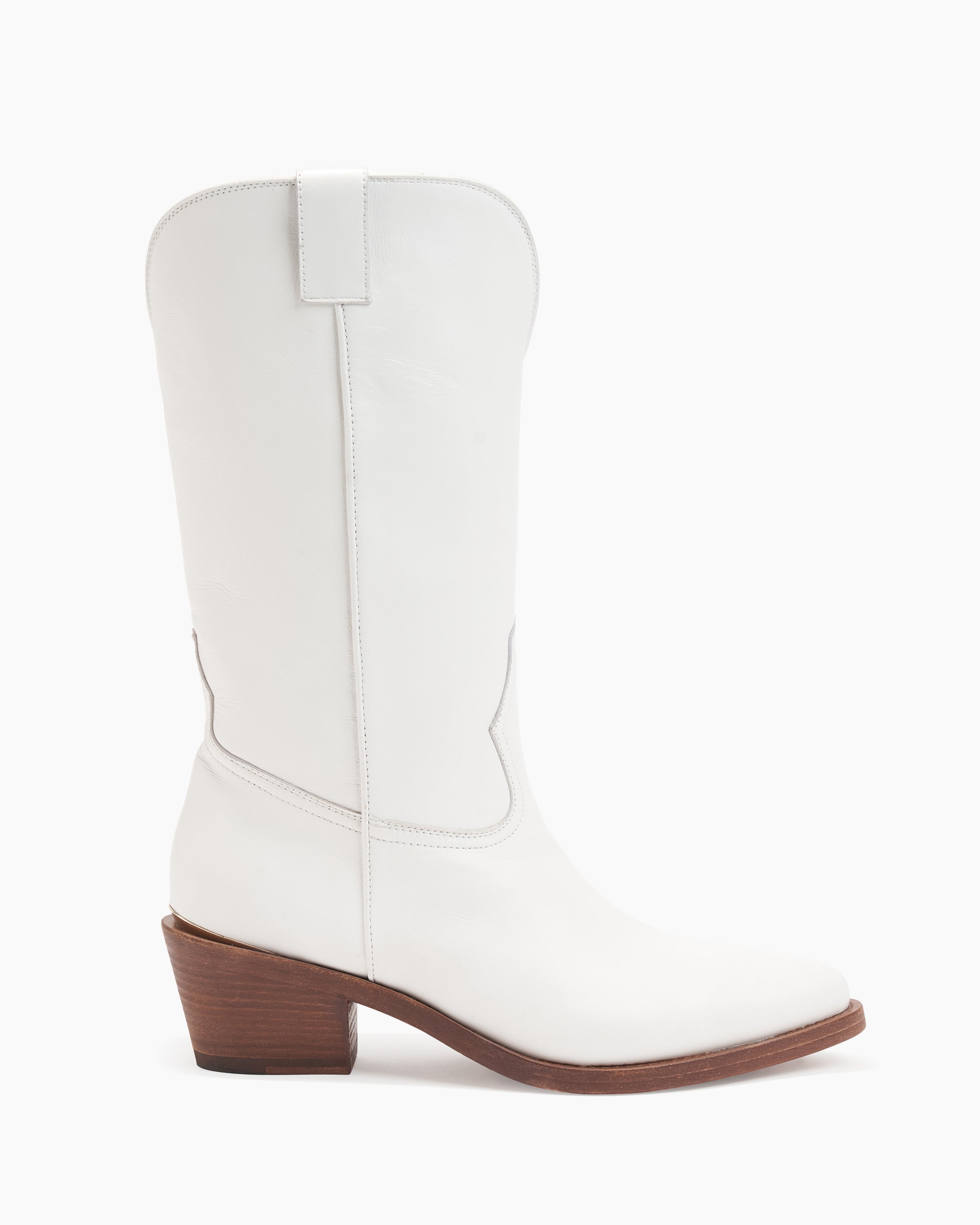 A structured mid-calf Western Boot crafted from supple white nappa leather, designed by Adam Lippes x Partlow.