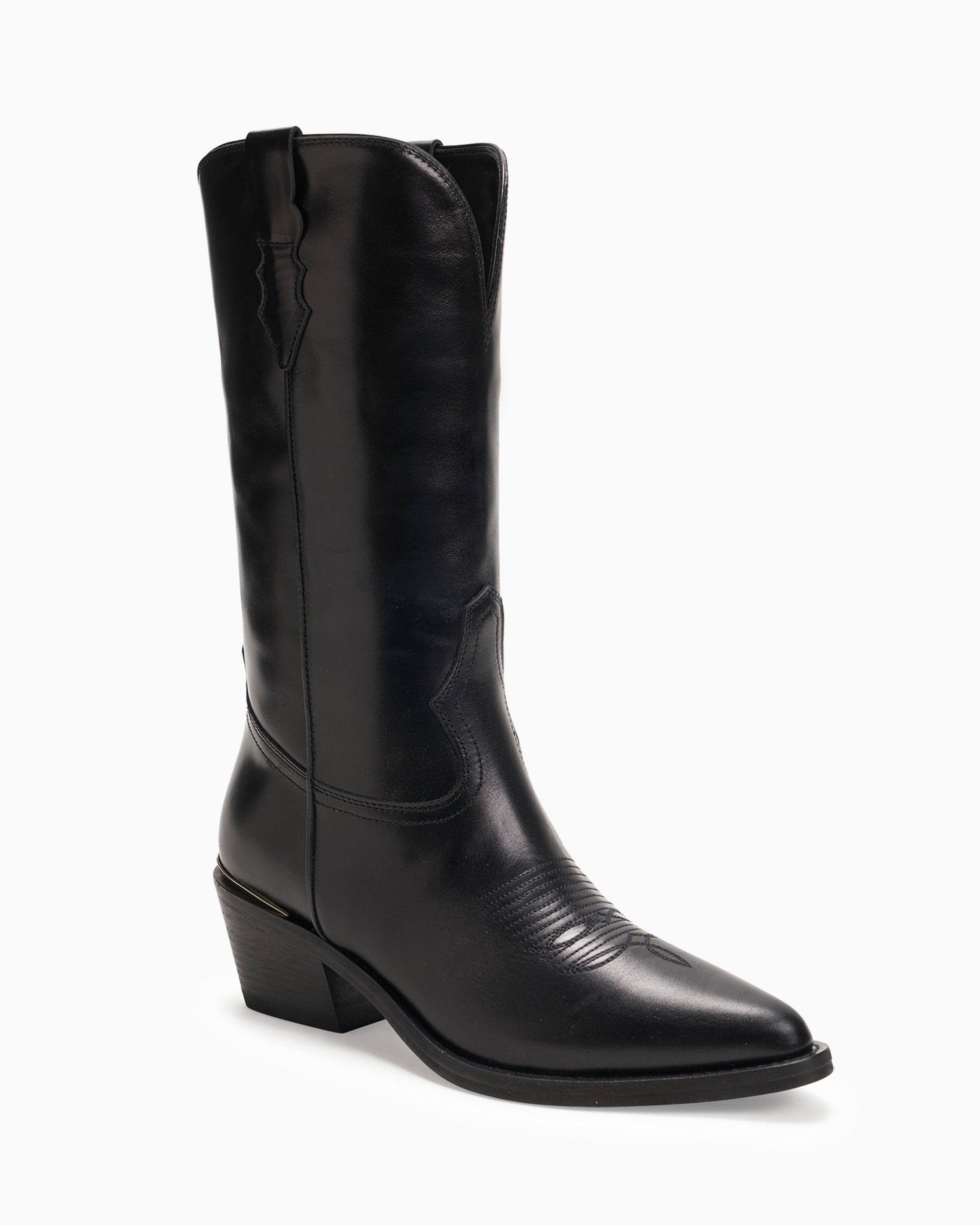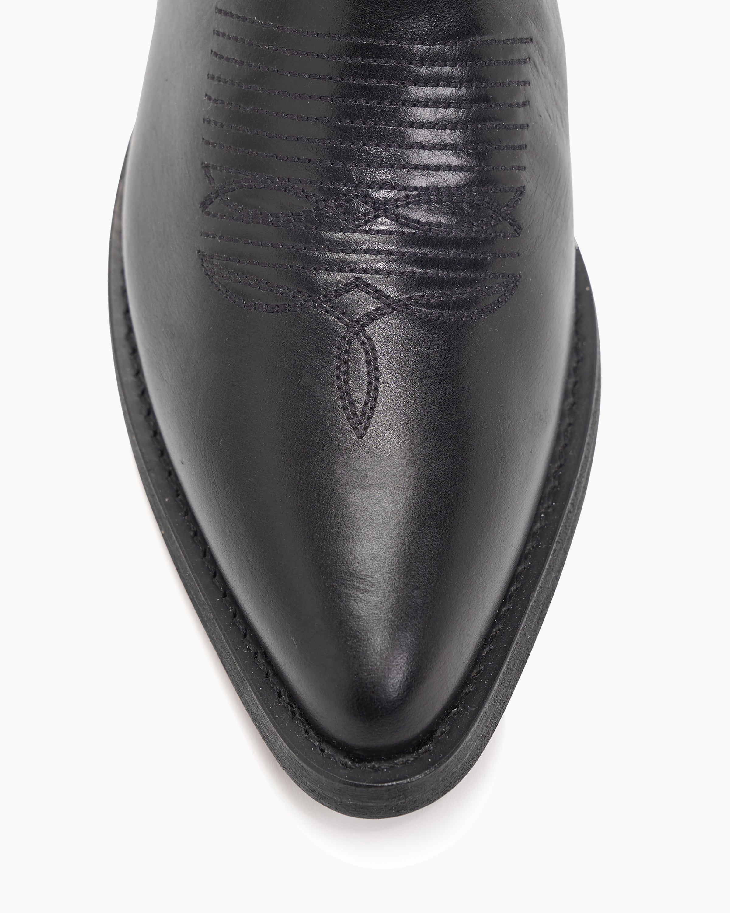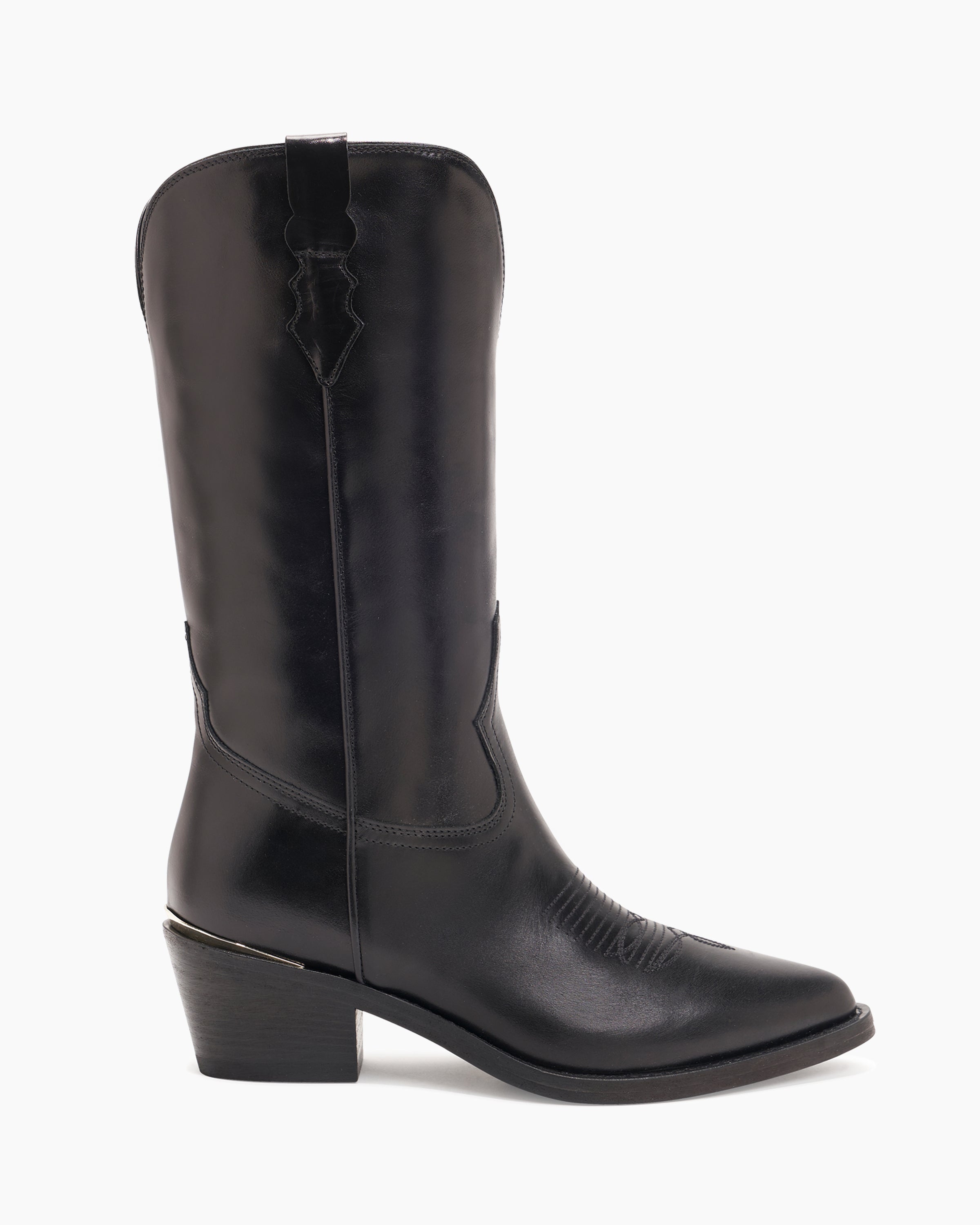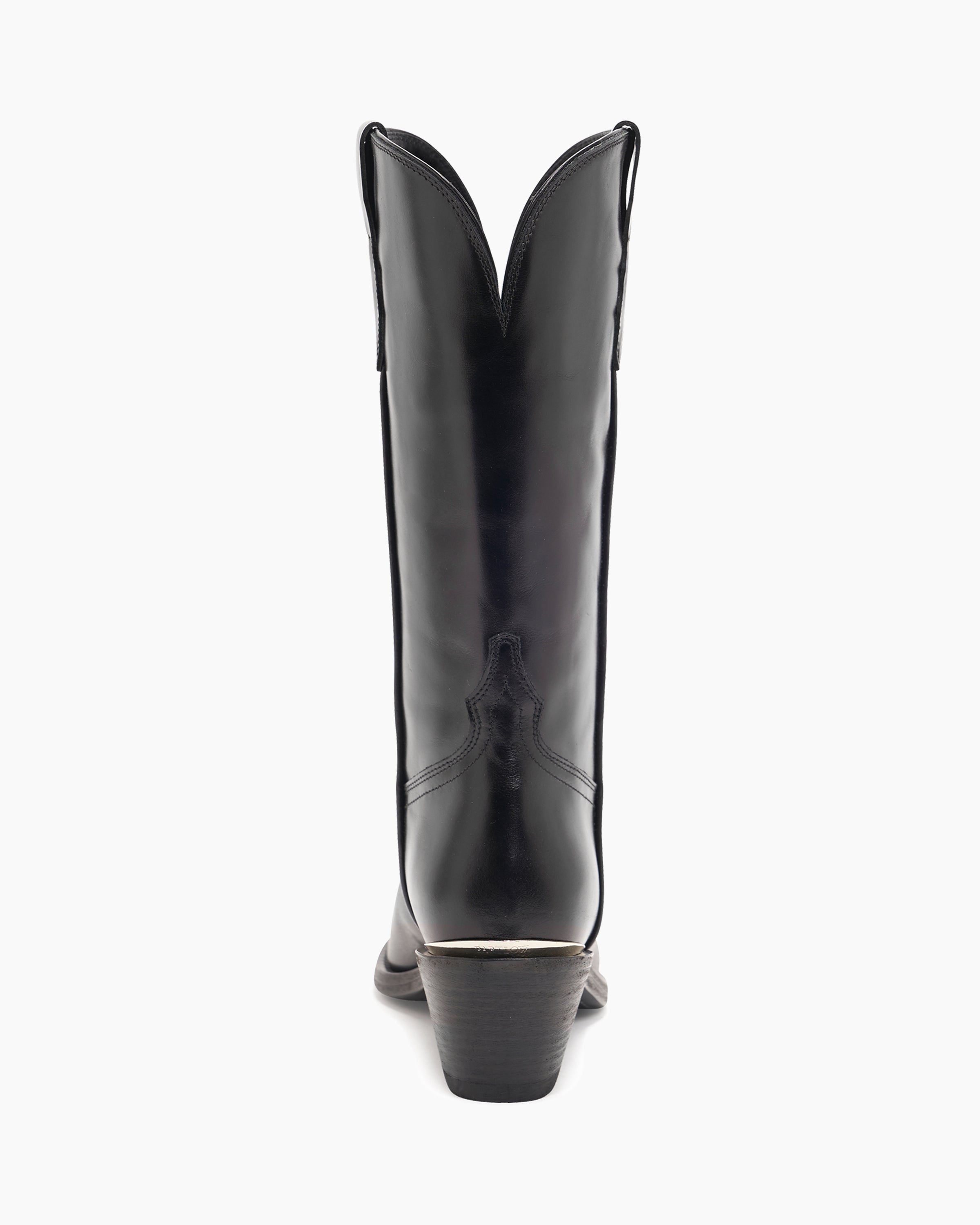 Pull on classic cowboy silhouette. Shiny calf leather upper. 55mm / 2.16” heel height. 6mm padded insole. Leather lining. Leather outsole with stitched welt. Signature Partlow plaque. Handcrafted in Italy.