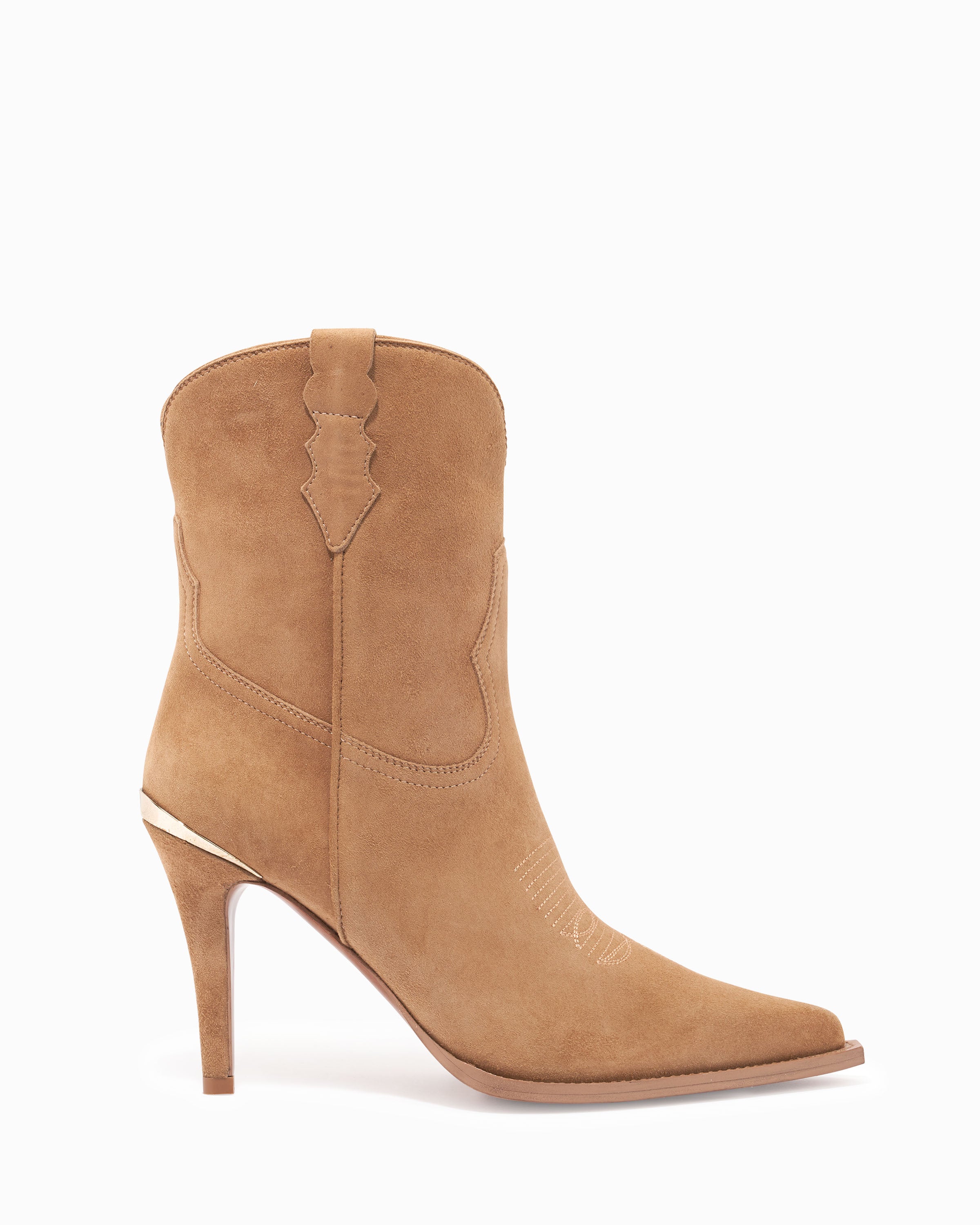 Pull on classic ankle boot. Suede upper. 95mm/3.75" heel height. 6mm padded insole. Leather lining. Leather outsole with stitched welt. Signature Partlow plaque. Handcrafted in Italy.
