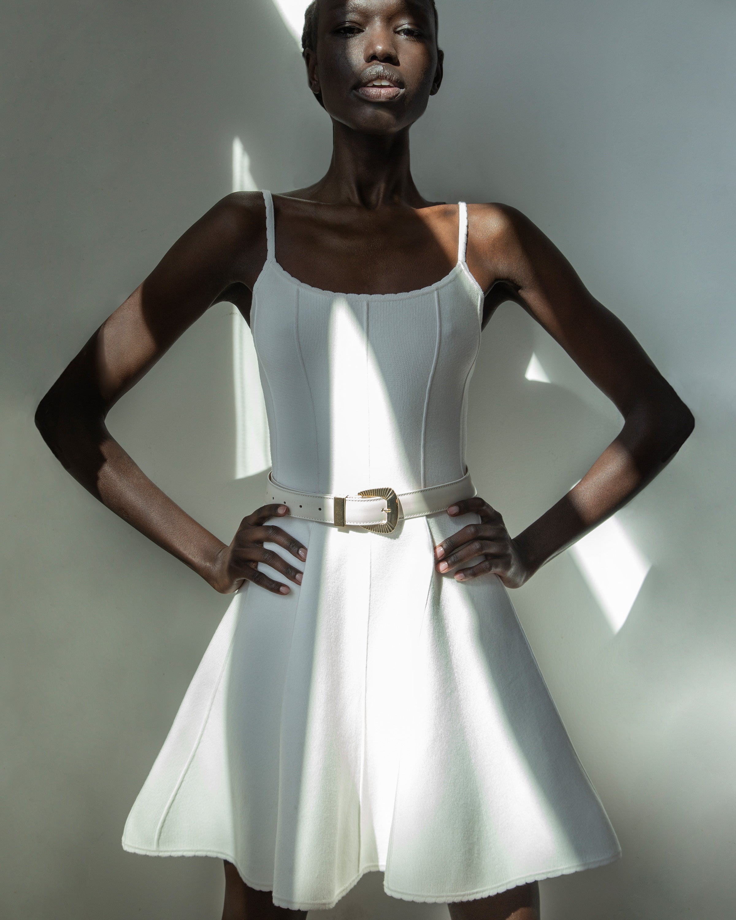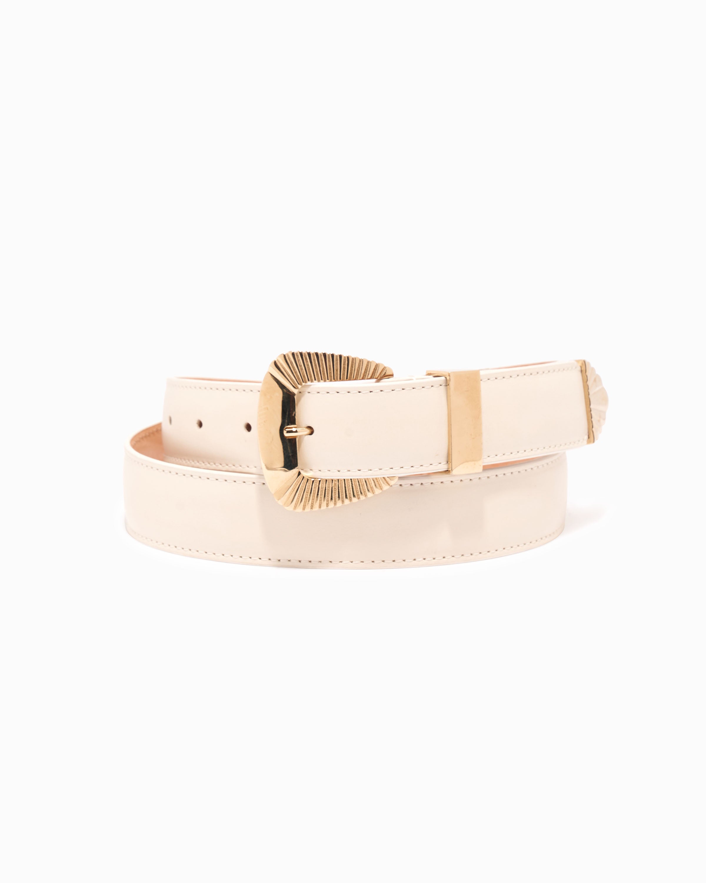 Classic belt in leather with signature Partlow buckle. Handcrafted in Italy. XS is 63-80cm (25-31”); S is 73-90cm (28-35”); M is 83-100cm (32-39”); L is 93-110cm (36-43”). The distance from the first to last hole is 17cm/6.6in, with 2cm between each hole.